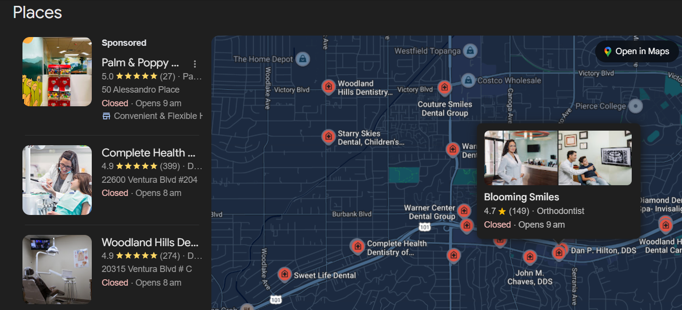 Since most people look for dentists in their nearby region, local SEO is crucial for dental practices. Claim and optimize your Google Business Profile (GBP) first. Ensure it includes your most up-to-date contact information, business hours, and high-quality practice photographs.
