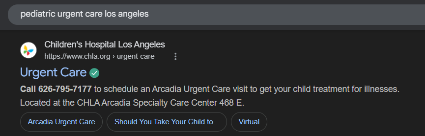- Service: “pediatric urgent care,” “primary care clinic,” “MRI center”