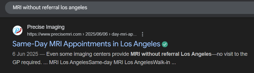 - Phrase: “MRI center near me,” “MRI without referral”