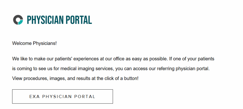 Create a “Referring Physicians Portal” with order forms, modality prep guides, prior authorization support, insurance lists, and e-fax. Offer live chat for schedulers.